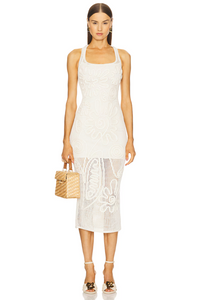Embrace easygoing elegance with the Emily Knit Dress. Crafted from 100% cotton in a midweight crochet knit, this pull-on style offers ultimate comfort and a relaxed feel. The partially lined design and semi-sheer fabric create a breezy look, perfect for warmer days. Hand wash gently to maintain its delicate beauty.